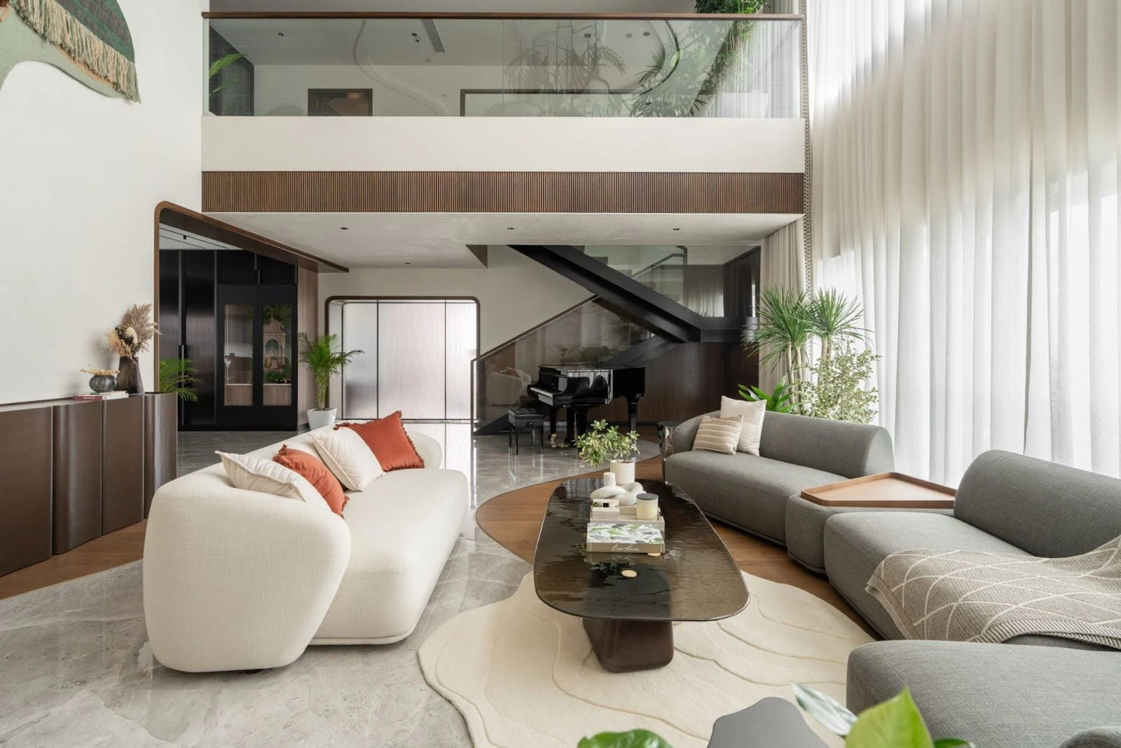 Window treatments and architectural details dramatically affect space perception. Full-height draperies and minimal dressings maximize natural light while maintaining privacy.